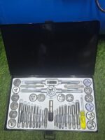 • The set includes taps (for internal threads), dies (for external threads), wrenches, and a pitch gauge.