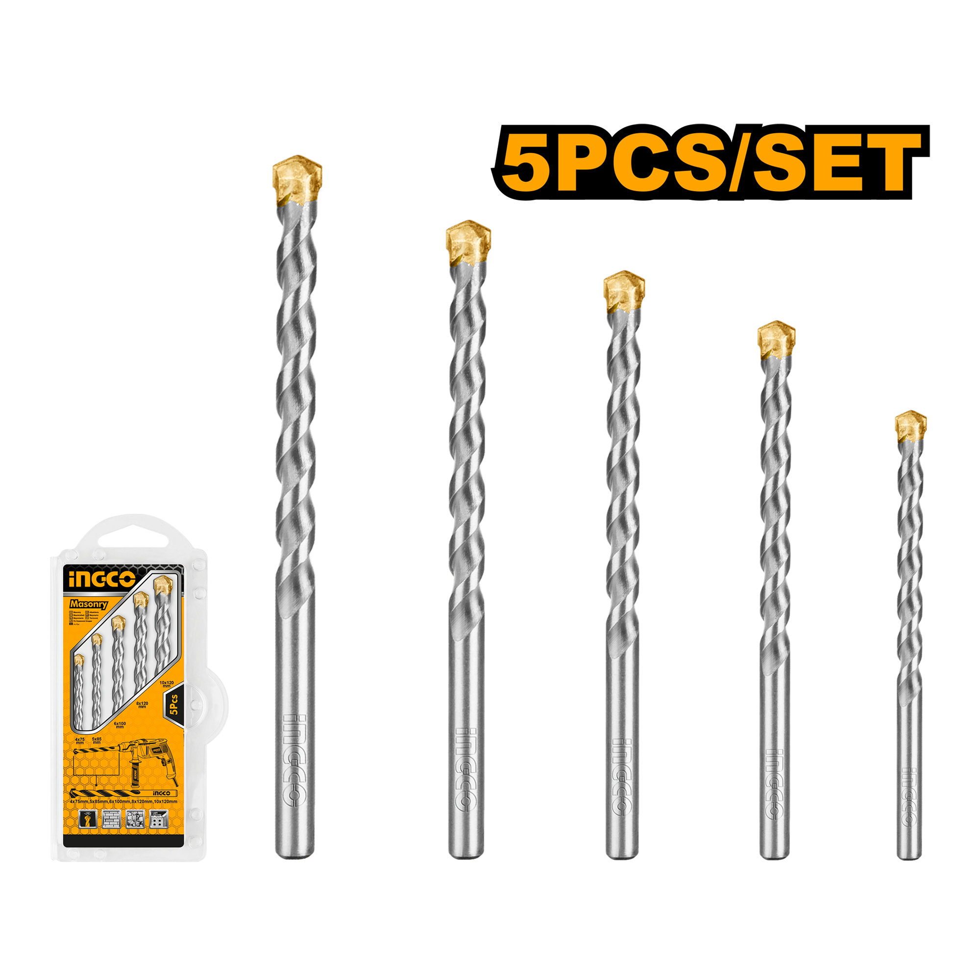Ingco 5 Pcs masonry drill bits set