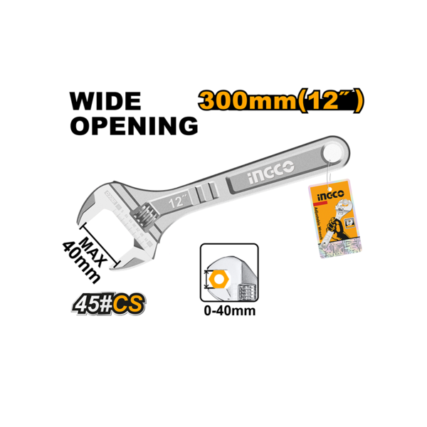 Ingco Adjustable wrench Length:300mm(12")