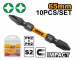 Ingco Impact Screwdriver bit PH2+PH2 65mm 10pcs/set