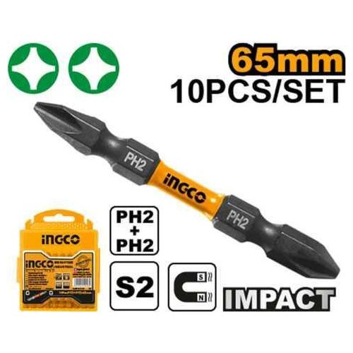 Ingco Impact Screwdriver bit PH2+PH2 65mm(2-9/16″) 10pcs/set