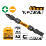 Ingco Impact Screwdriver bit PH2+SL6.0*1.0 65mm 10pcs/set
