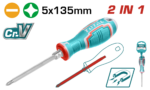 | 2 IN 1 Screwdriver set Shank size:5X135MM,PH1+SL5 Material:CR-V With 1pcs interchangeable handle Packed by plastic hanger |