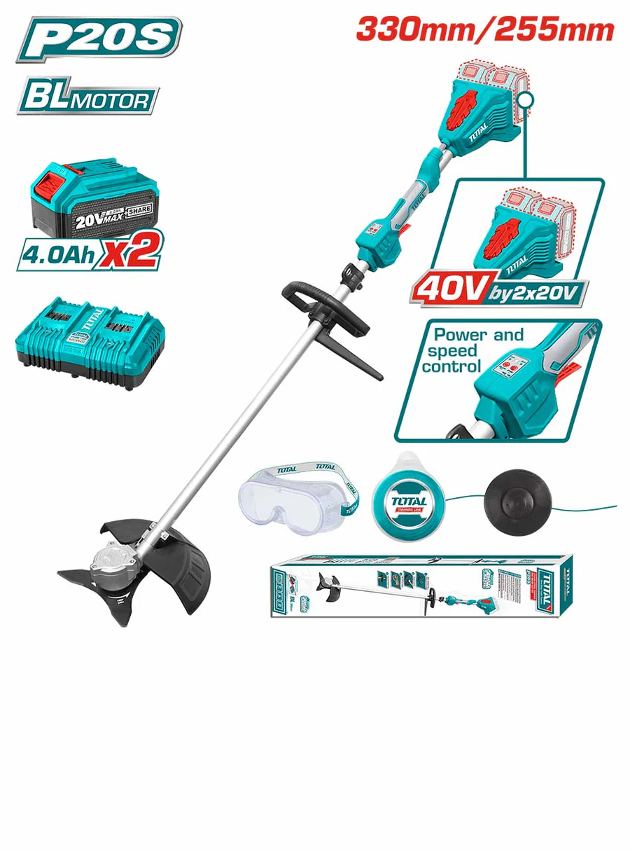 Total Cordless string trimmer and brush cutter Brushless Motor Voltage:40V(20V+20V)