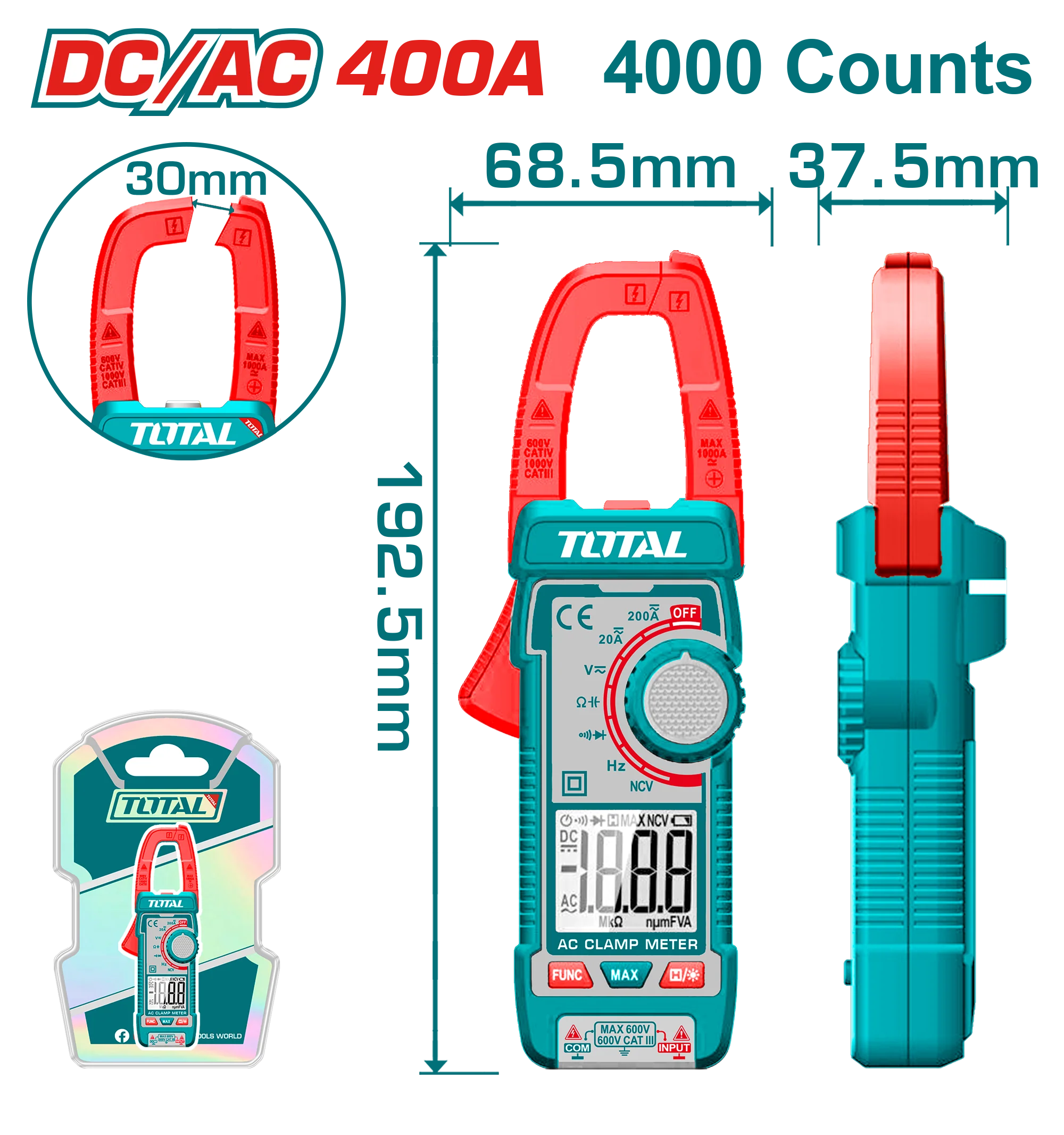 Be the first to review “Total DC/AC clamp meter 400A 4000Counts”