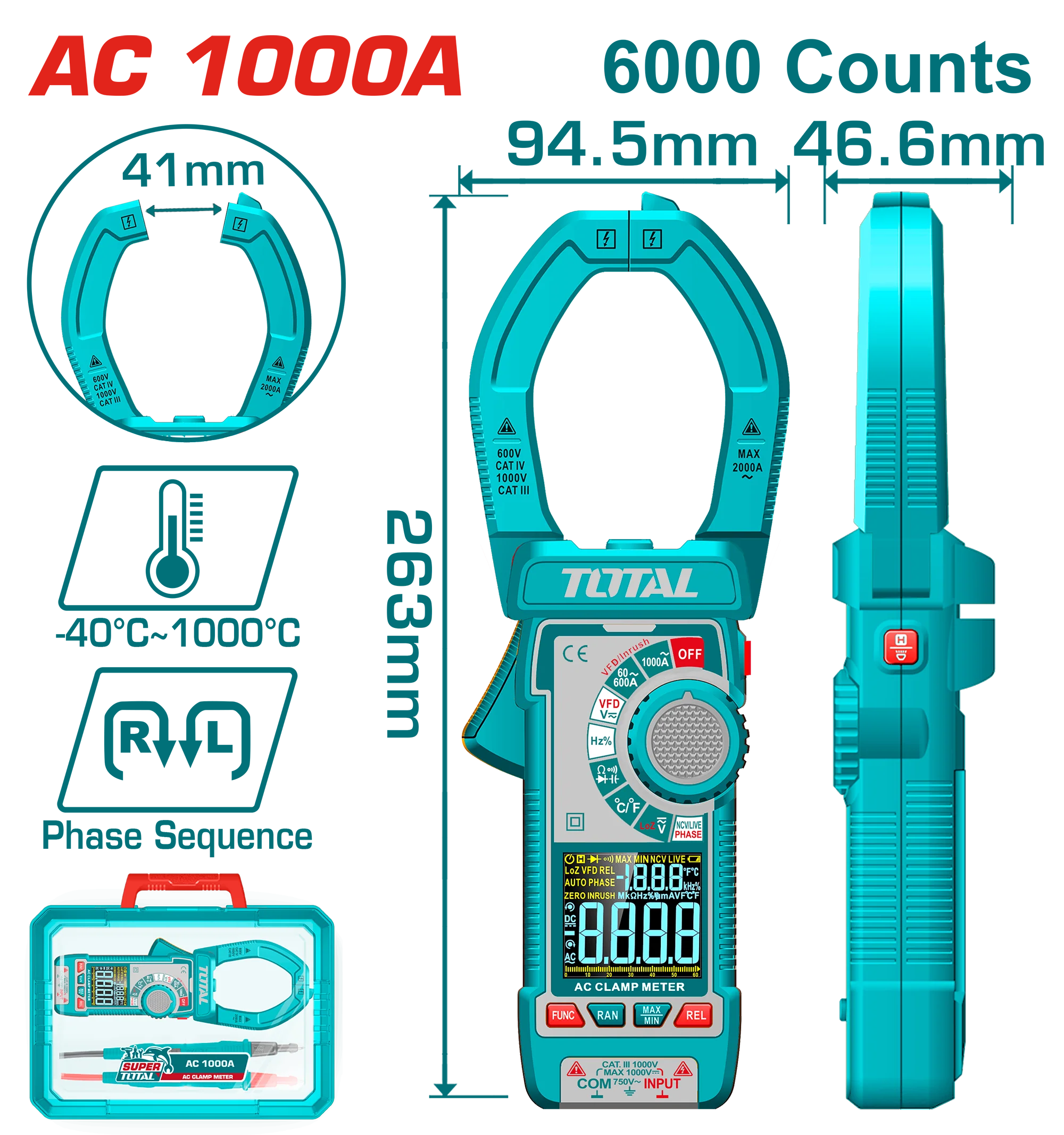 Total Digital AC clamp meter 1200A 6000Counts